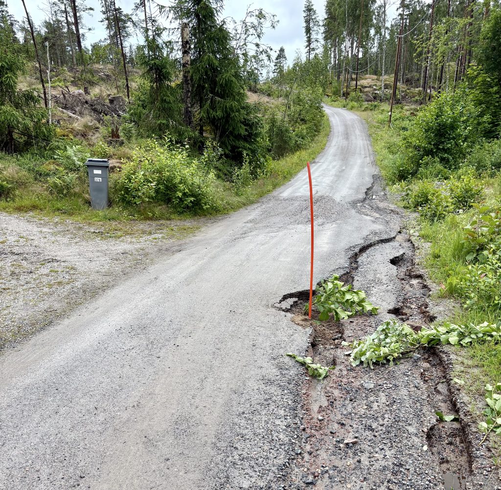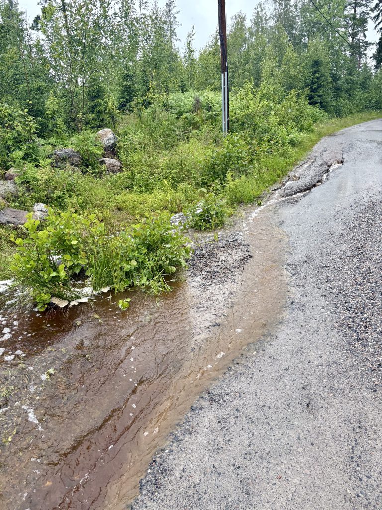 Yöllä ja aamulla on satanut runsaasti vettä. Tiellä on nyt muutamia vaurioita, mutta urakoitsija on jo kutsuttu korjaamaan niitä. Ajakaa varovaisesti.