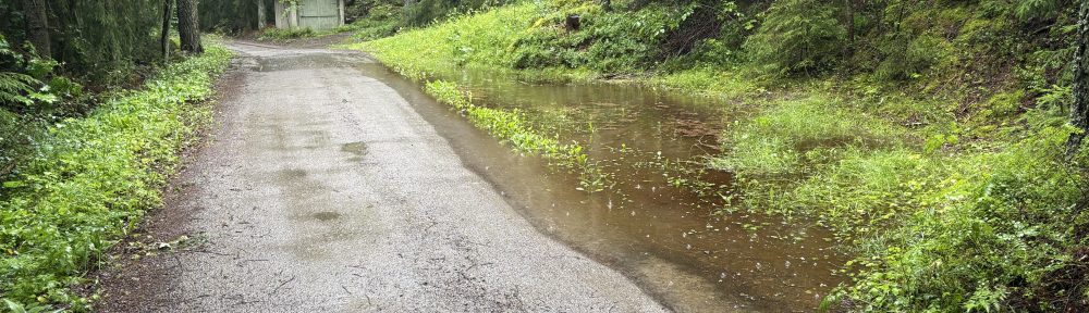 Yöllä ja aamulla on satanut runsaasti vettä. Tiellä on nyt muutamia vaurioita, mutta urakoitsija on jo kutsuttu korjaamaan niitä. Ajakaa varovaisesti.